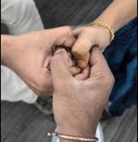 M. Y.: We sometimes put our hands like this. You obviously don’t see it. We put our hands straight facing each other and then go into each other. Like in a… But yeah, just hyping us up basically. All three of us together trying to like get ready for the show. Because we had shows where we just been sitting the whole day and then went to stage. And for me now, I have to like warm myself up, hype myself up. Yeah.