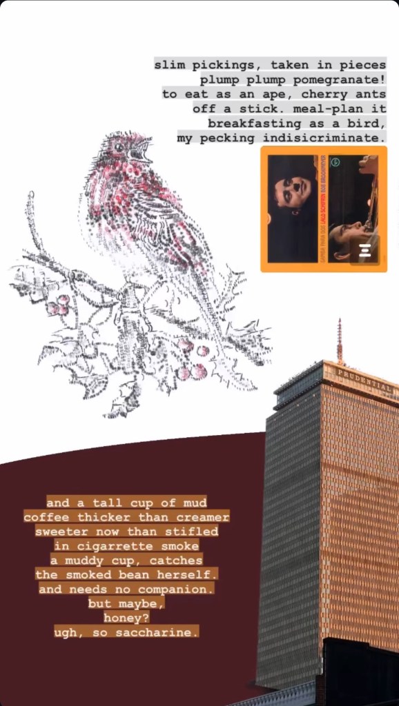 Below is a living collection of poems originally from my instagram @seanmfay and contains a song as a companion. These songs cannot be added right now, because I use the free version of wordpress.